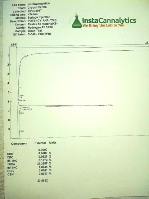 A Purple Striped Blueberry male was crossed to a Very Potent Vortex Female. The result was a tester pheno that hit 23% THCA grown outdoors.